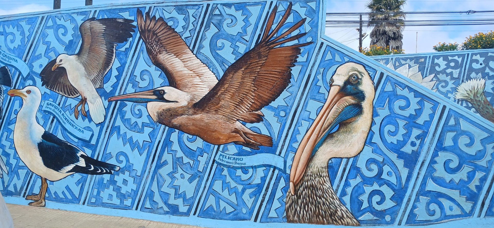 En muchos casos, los murales del litoral parecen construirse como una conversación con el paisaje. Los colores dialogan con la luz costera, la sal, los cielos abiertos y con texturas del entorno. Aparecen elementos naturales, formas orgánicas, animales, plantas y escenas que evocan la vida cotidiana, como las bordadoras de Isla Negra. No se trata solo de decorar paredes, sino de dejar una marca cultural que conecta a la comunidad con su propio entorno.